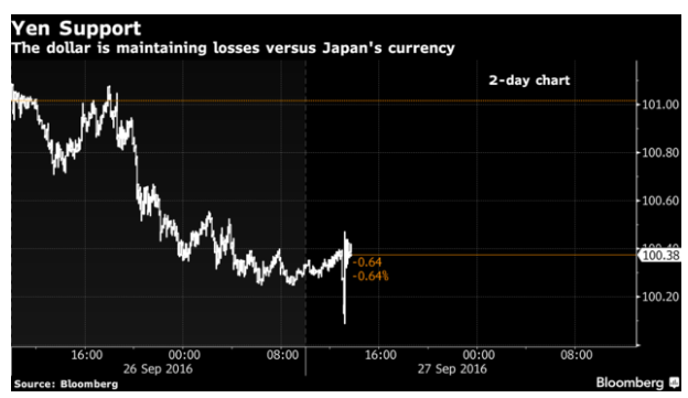 美元/日元一度觸及100.09的日內(nèi)低位。同時(shí),黃金上漲,亞洲政府債券也呈現(xiàn)上漲趨勢。