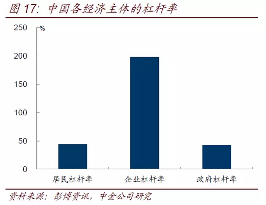 盡管工業(yè)品價格上漲會一定程度改善企業(yè)盈利和帶動物價上升,但產(chǎn)能過剩并未解決的局面削弱了商品價格和企業(yè)投融資需求的聯(lián)系,價量背離使得商品價格上漲對債券的影響不能簡單按照以往傳統(tǒng)經(jīng)濟(jì)周期的模式推演。我們認(rèn)為明年財政赤字增加是大概率事件,畢竟在企業(yè)杠桿放緩,居民今年已經(jīng)大幅加杠桿買房,房地產(chǎn)調(diào)控使得明年居民杠桿提升速度也會放緩的背景下,只有政府(尤其是中央政府)提升杠桿,才能保持經(jīng)濟(jì)的平穩(wěn)運(yùn)行。相比于海外發(fā)達(dá)經(jīng)濟(jì)體,中國政府的杠桿率并不高,確實有一定的杠桿提升空間(圖17)。但目前尚不清晰明年財政赤字可能會提升多少。過去幾年積極的財政政策基調(diào)下,赤字率也未能超過3%,即使明年會突破3%,能多增加多少也需要等待政府定調(diào)。今年居民房貸較去年多出近2萬億,是邊際上對經(jīng)濟(jì)的重要支撐力量。如果明年居民房貸回落到正常水平,比今年回落2萬億,那么理論上在企業(yè)融資需求未明顯提升的情況下,政府的赤字可能也要有相近量級的提升才可能托住經(jīng)濟(jì)。而今年中央加地方的財政赤字是2.18萬億,如果赤字增加1-2萬億,將是很大幅度的提升,這需要進(jìn)一步觀察后續(xù)的政策基調(diào)才能作判斷。