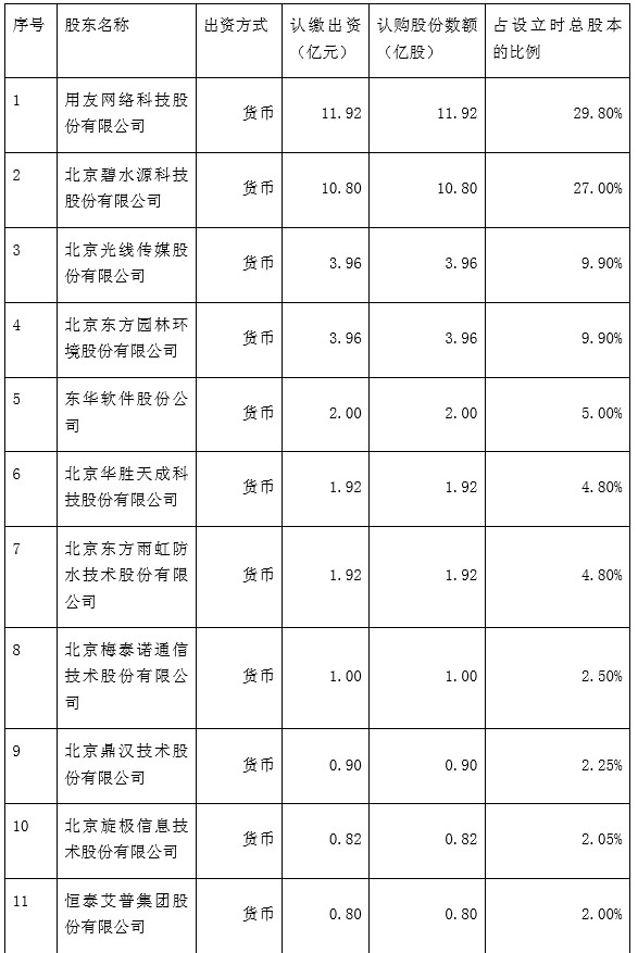 更多的細節(jié)在不久前由中關(guān)村銀行的第一大股東“用友網(wǎng)絡”所披露,其公告稱,擬與碧水源、光線傳媒等10家公司共同投資發(fā)起設立北京中關(guān)村銀行股份有限公司。擬注冊資本為40億元人民幣,擬注冊地址為北京市海淀區(qū)。
