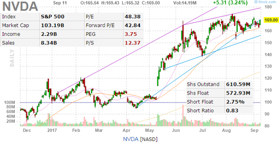 NVDA于8月10日發(fā)布的第二財季財報顯示,每股收益1.01美元,好于預(yù)期值0.82美元;營收同比增56.2%至22.3億美元,好于預(yù)期值19.6億美元。
