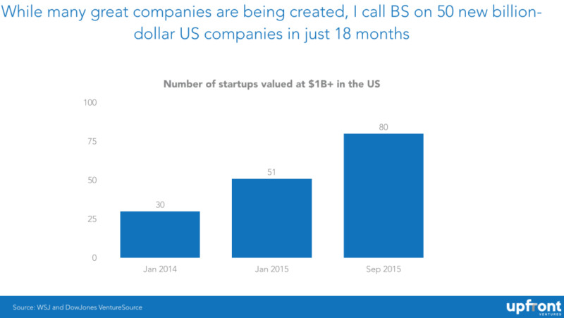 通常而言,市場總會帶來一些提示。2014 年,12 次估值中就有 3 次比上一輪估值要低。25% 的 down round(后一輪估值比上一輪低的融資輪次)比例著實可悲。可是到了 2015 年,down round 的比例高達(dá) 71%,7 次估值中就有 5 次比上一輪估值要低。