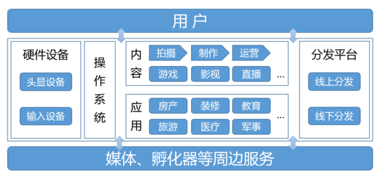 硬件設(shè)備、操作系統(tǒng)、內(nèi)容、應(yīng)用、分發(fā)平臺(tái)構(gòu)成了VR產(chǎn)業(yè)鏈的核心環(huán)節(jié)。我們將基于這五大環(huán)節(jié)對(duì)VR產(chǎn)業(yè)鏈進(jìn)行拆解。